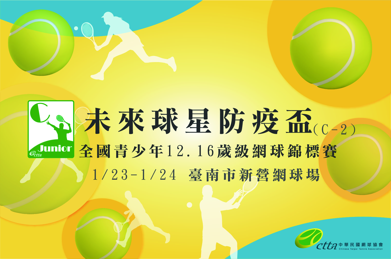 ※110年C級賽事各歲組,全國排名男生前30、女生前15名選手不得報名本歲級。比賽日期:110年1月23日(星期六)至1月24日(星期日)止,共二天 (視實際報名人數得增加一天)。比賽地點:臺南市新營網球場(八面紅土)地址:臺南市新營區新南一路八號