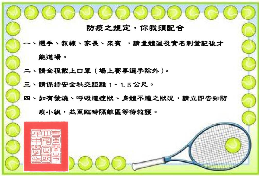二十二、為防範新型冠狀病毒傳染,參賽選手、教練及家長請務必配合以下規定,說明